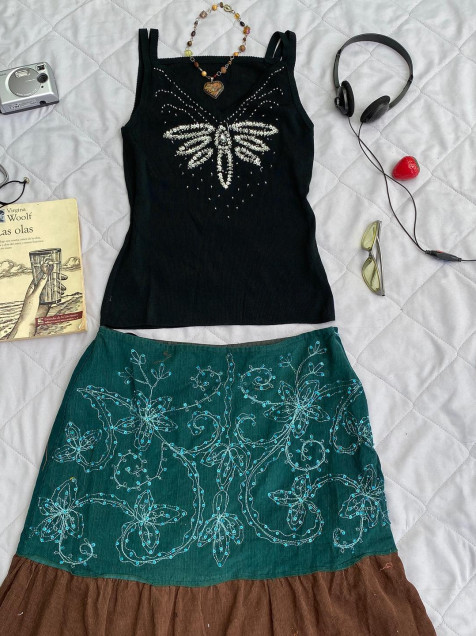 butterfly top talla s tuyo x $150 pesos omo ⋆ ★ falda dolce cabo talla s/m tuya x $180 pesos omo⋆ ★medidas lineales: 38 cintura baja, 47 cadera y 87 largo