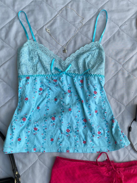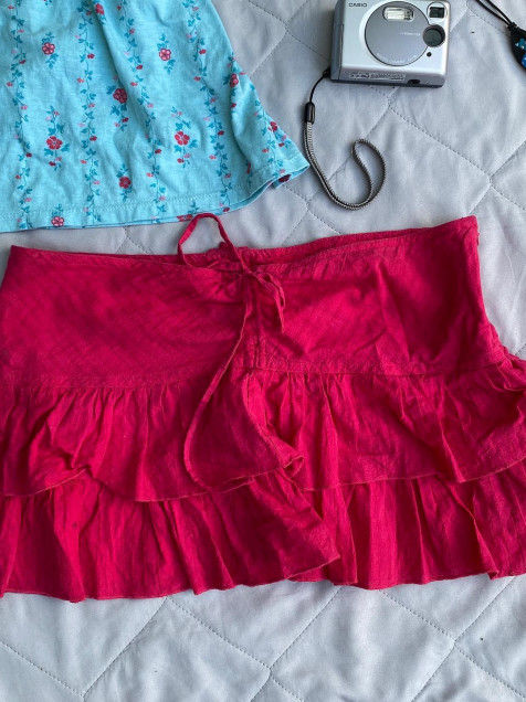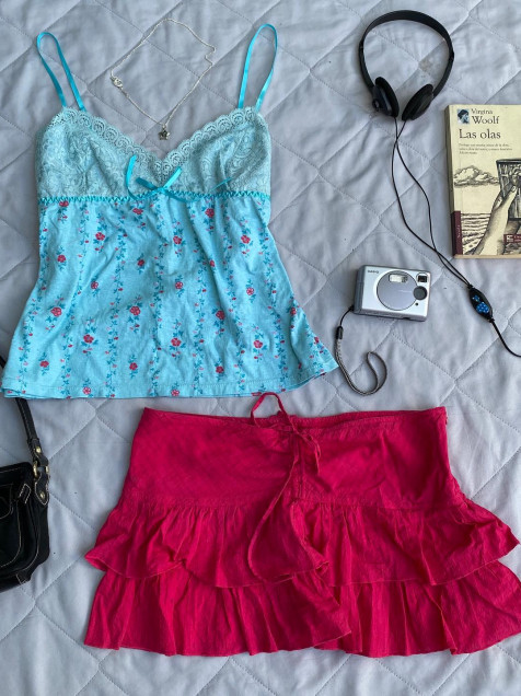 VENDIDO top azul de encaje talla m (queda suelto a s) tuyo x $130 pesos ⋆ ★ VENDIDO falda rosa talla 6 tuya x $130 pesos ⋆ ★ medidas lineales: 39 cintura baja, 45 cadera y 29 largo