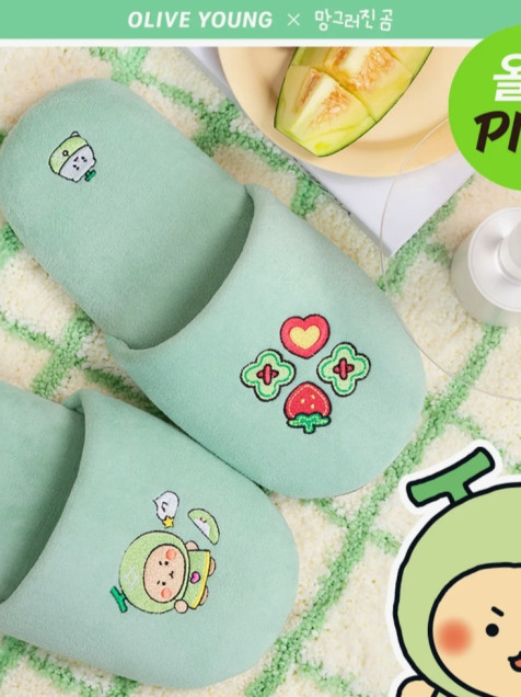[mangomee Edition] nareun Velvet Home Slippers Green (Fruit Sweets)