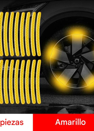 Cinta amarilla 40pz pegamento reflectante llanta rin coche advertencia seguridad moto camion