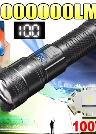 Linternas Led alta potencia linterna táctica luz pantalla carga USB Camping pesca Defensa Zoom
