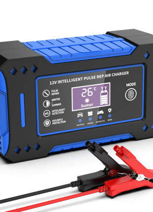 Cargador inteligente azul cables herramienta batería acumulador coche motocicleta LCD 6A 12V