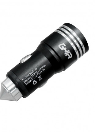 Cargador Para Auto Ghia Gac-176 2puertos Usb 5v Color Ne /vc Color Negro
