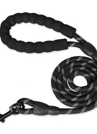 Correa negra perro reflejante mascota 1.5m grosor .8cm acolchado cuerda duradera seguridad acero