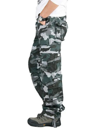 Pantalón cargo tácticos azul01 talla 34 camuflaje 8 bolsillo algodón alta calidad senderismo