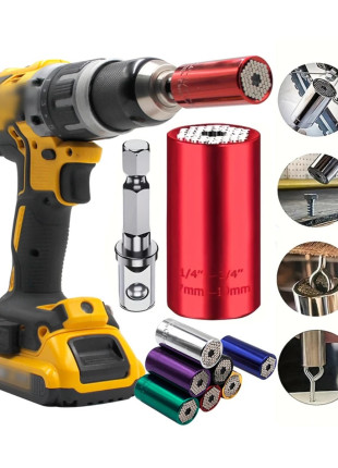 Dado Universal plata Grip Adaptador 1/4-3/4 7mm-19mm herramienta matraca taladro metálico mecánico