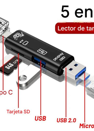 Lector tarjetas adaptador 5 en 1 multifunción USB 2,0 tipo C USB Micro SD TF memoria PC Android OTG