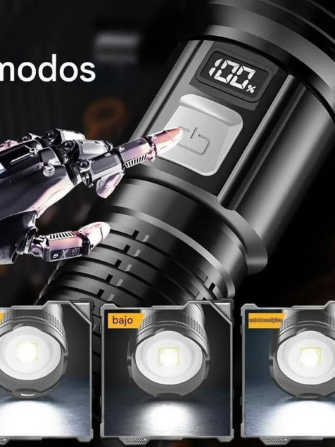 Linternas Led alta potencia linterna táctica luz pantalla carga USB Camping pesca Defensa Zoom