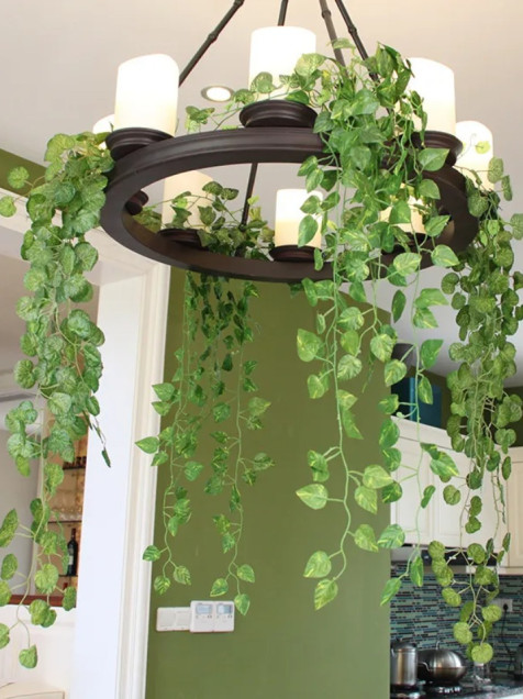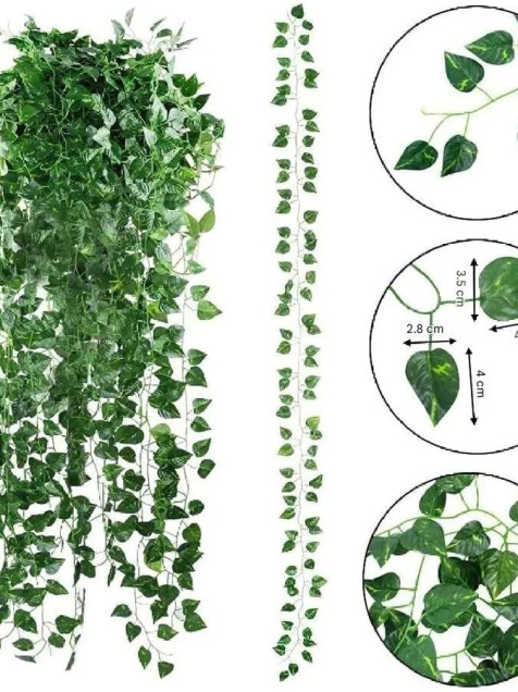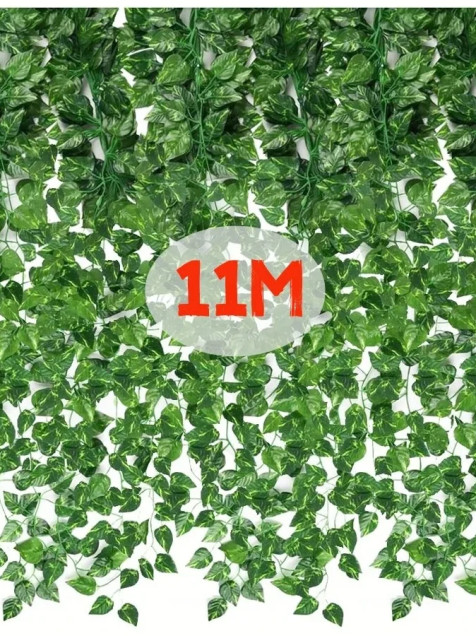 Guirnalda de hojas de hiedra verde para plantas artificiales, guirnalda de plantas falsas, vid colgante para exteriores, bricolaje, pared de jardín, boda, fiesta, decoración del hogar, 11M