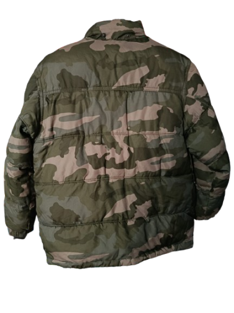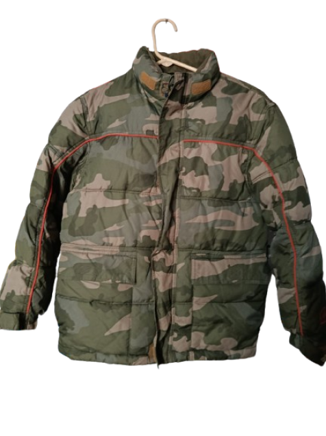 Chamarra camuflaje talla L niño (10-12) de pluma muy cálida forro interior 5 bolsas campismo