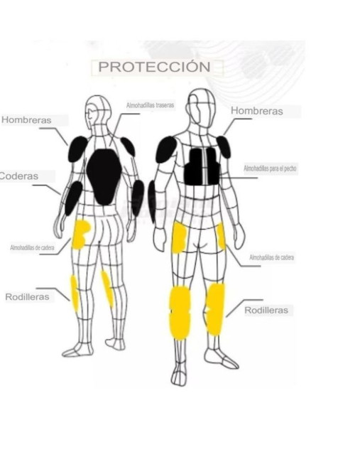 Protectores removibles de 7 piezas en la espalda, hombros, codos, pecho
