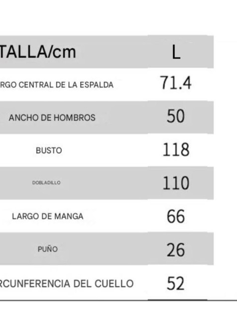 Talla grande Altura: 170-189cm, peso: 80-92kg