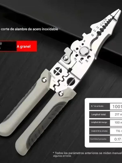 Pinza Pela Cables alambre Alicates plateada Multifuncional Pelar alambre Hebra Corte electricista