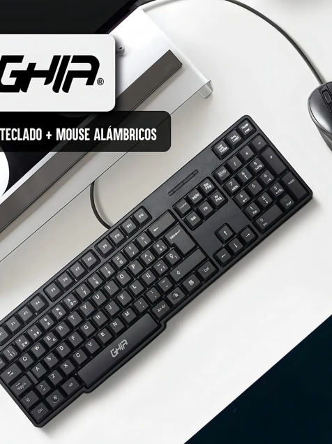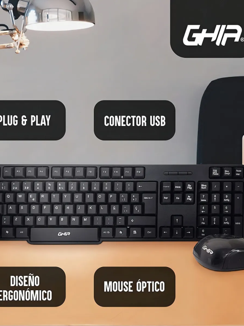 Kit de Teclado y Mouse GHIA GTA100 Conectividad USB color negro pc laptop portátil datos raton