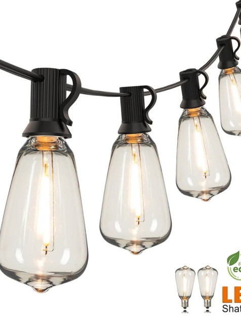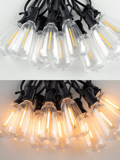 Regulable y seguro patio luces cadena: Estas luces de cadena ST38 son compatibles con dimmer y listadas por UL, que son más seguras que las luces normales. Una bombilla que se apaga no afecta a otras bombillas.