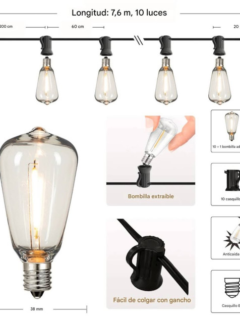 Longitud del cable de luz de cadena: 7,6 metros (25 pies)