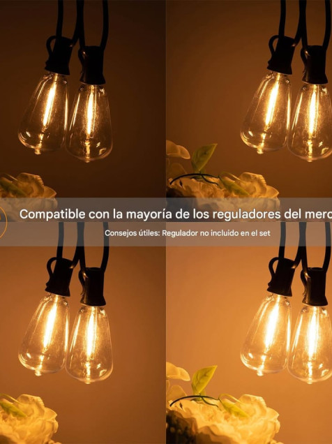 Decoración amplia: Estas luces de hadas de jardín crean un ambiente vintage y romántico en su habitación. Las bombillas LED emiten luz blanca cálida natural. Iluminación perfecta para interior/exterior, patio, patio trasero, patio, bistro, café, guirnalda, jardín, fiesta de bodas, Navidad y varias ocasiones o eventos.