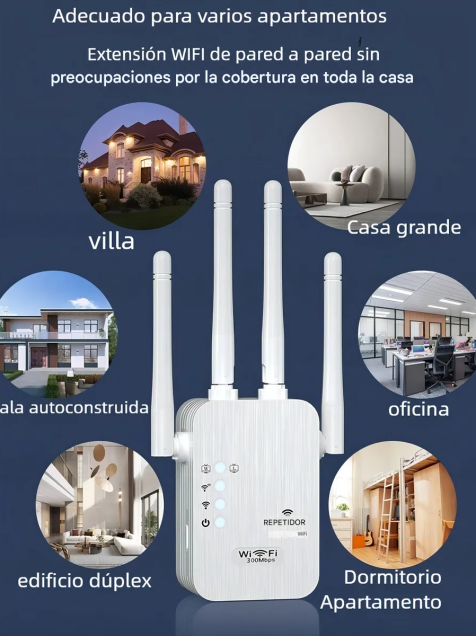Amplificador De Señal Wifi 300mbps repetidor Inalámbrico blanco 4 antenas redes internet extensor