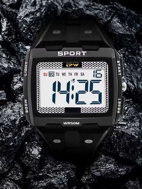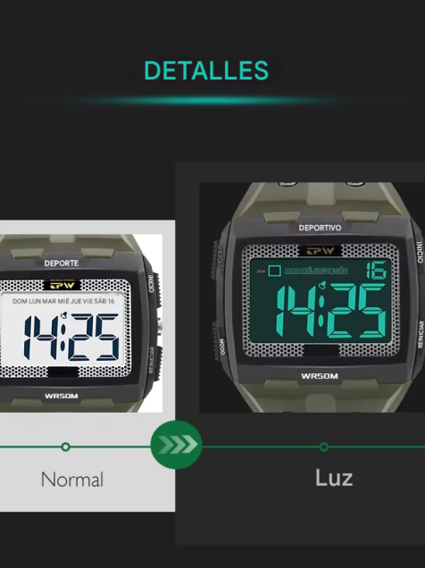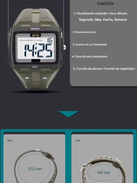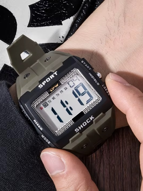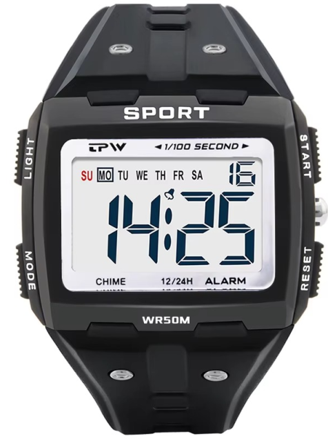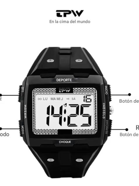 Reloj digital gran tamaño negro Números grandes Fácil de leer Resistente agua 5ATM deporte led luz