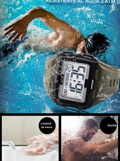 • La resistencia al agua de 5 ATM está a salvo de salpicaduras