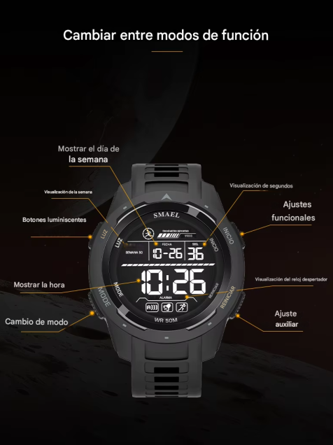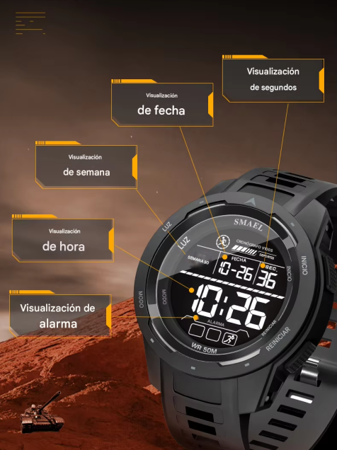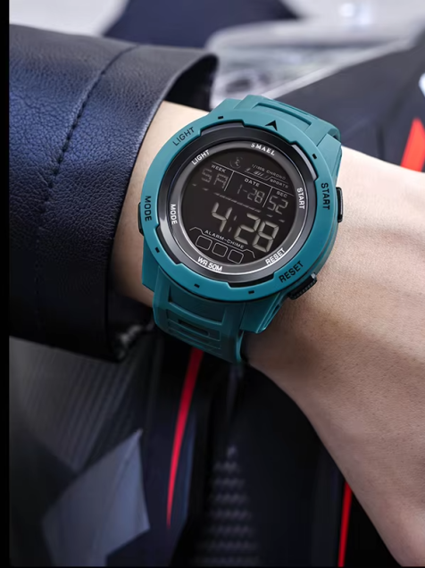 Relojes digitales azul deportivos pulsera luz LED resistente agua hasta 50m deportes táctico