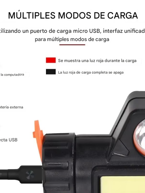 LED recargable: El faro cuenta con una luz LED recargable, lo que garantiza un brillo duradero para sus aventuras al aire libre.