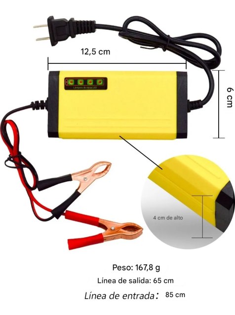 Adecuado para 12V, 4AH a 20AH, plomo-ácido o batería AGM o GEL.