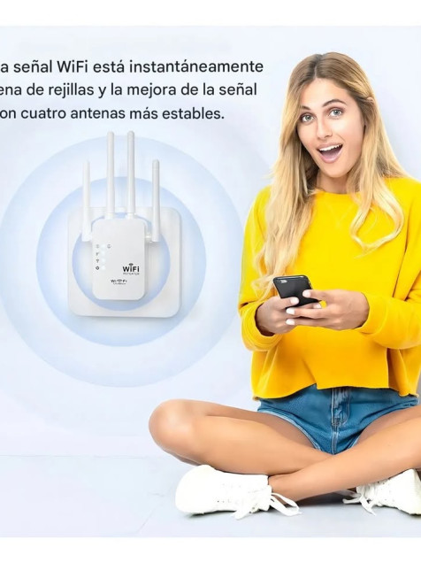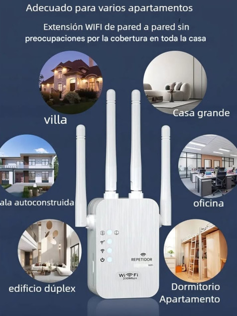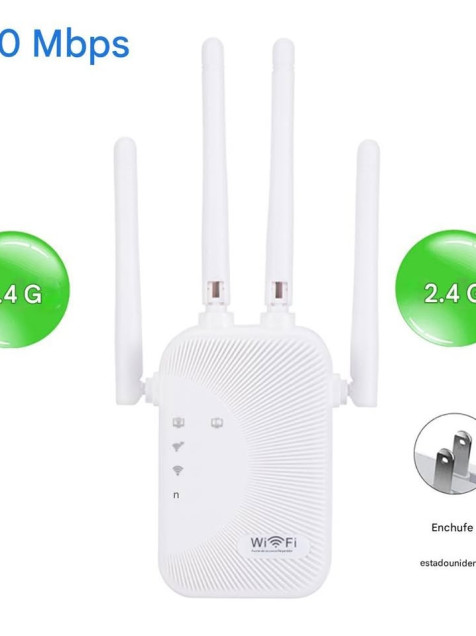 Amplificador De Señal Wifi 300mbps repetidor Inalámbrico blanco 4 antenas redes internet extensor