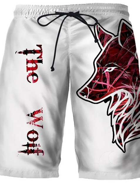 Short Pantalones Cortos blanco Playa Con Estampado 3d Lobo deporte ropa deporte