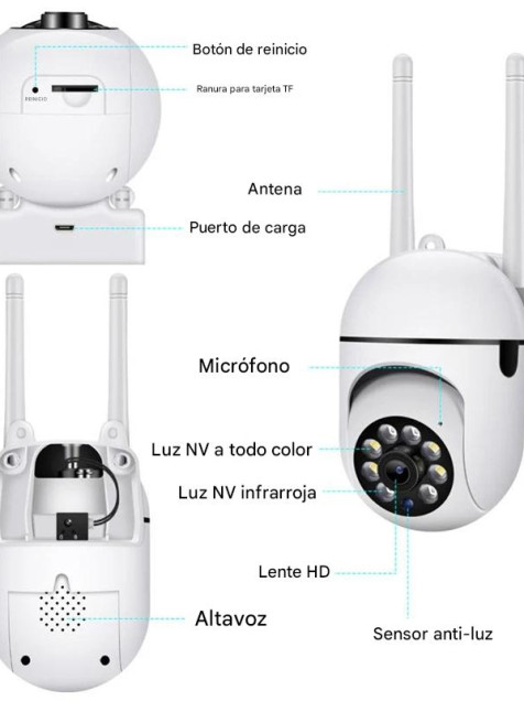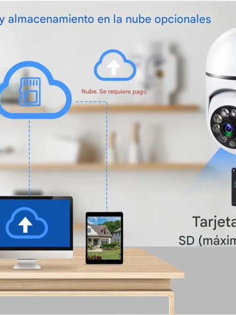 Almacenamiento de video 2 formas: tarjeta SD máximo 128G (no incluida), almacenamiento en la nube (no gratuita) (vídeo de alarma)
