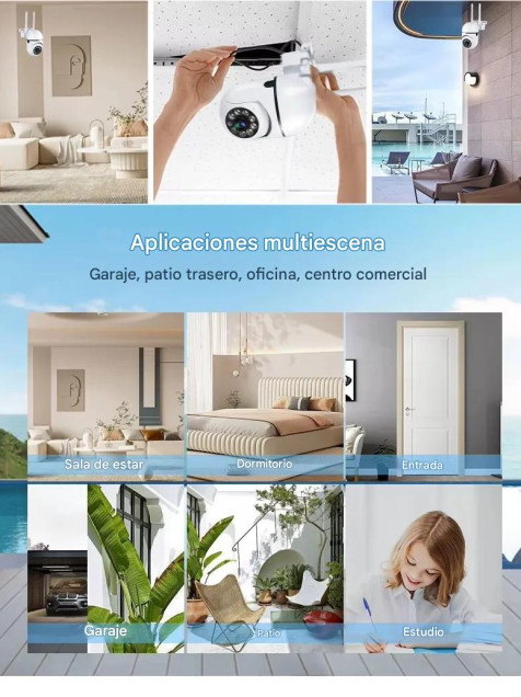 Cámara vigilancia seguridad inalámbrica IP Wifi 8MP Zoom 4X Audio bidireccional nocturna HD Color