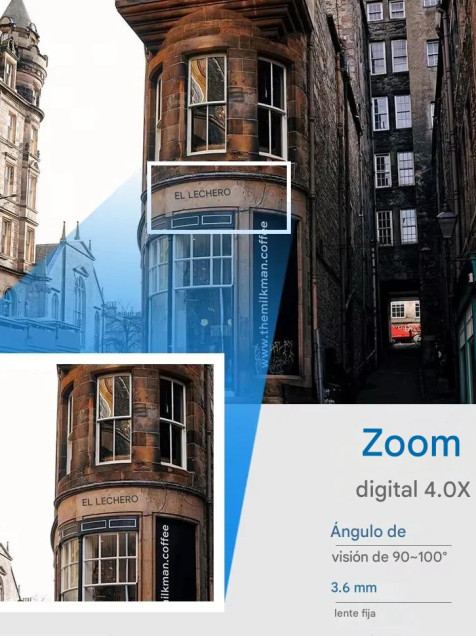 ✨【Zoom 4X】: Para deslizar la pantalla del teléfono para girar y mirar, zoom digital 4X para ver los detalles de cualquier parte de la imagen.