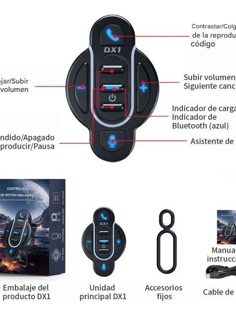 ¡Debido a la variedad de auriculares bluetooth casco en el mercado, por lo que el dispositivo es a través del control remoto de los teléfonos móviles, la salida de audio del teléfono móvil a los auriculares bluetooth casco para controlar los auriculares bluetooth casco, el producto debido al diseño único se puede colocar en una variedad de modelos de motos, bicicletas en el manillar, fácil y cómodo de controlar: el nivel de volumen, reproducir música y pausar la música, despertar el asistente de voz, así como contestar el teléfono y colgar el teléfono! Funciones