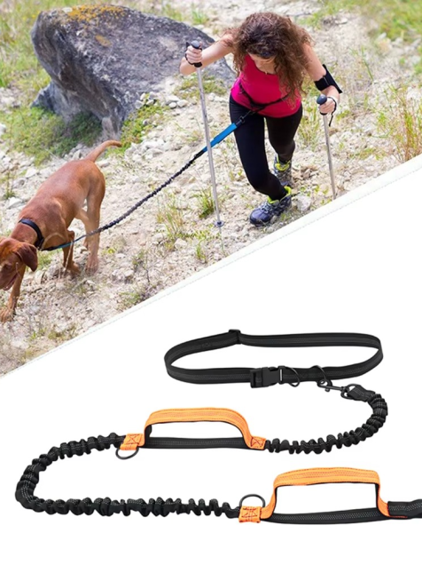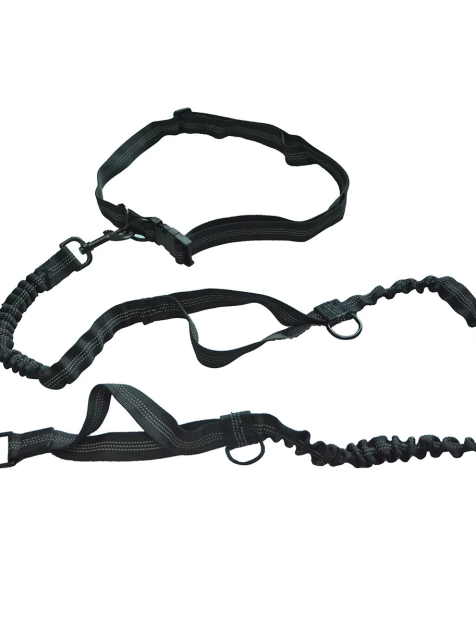 Correa retráctil negro elástica perro manos libres correr asas dobles cordón elástico reflectante