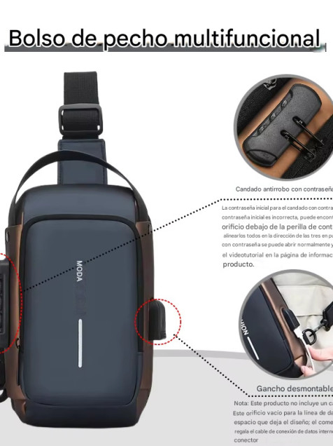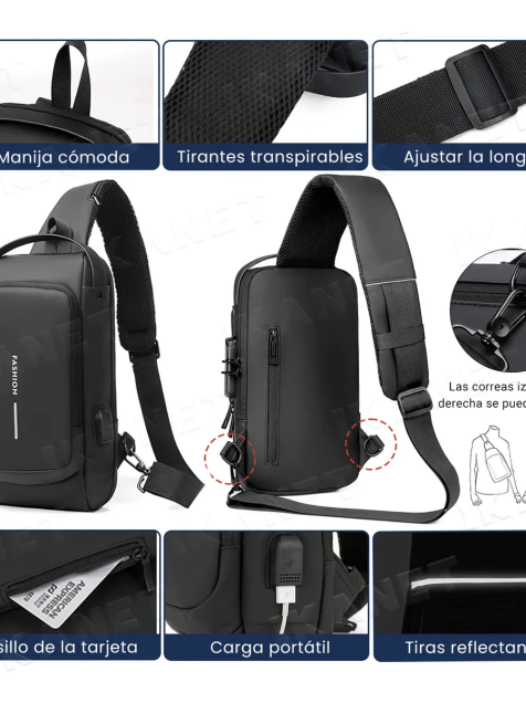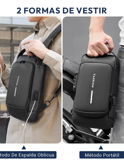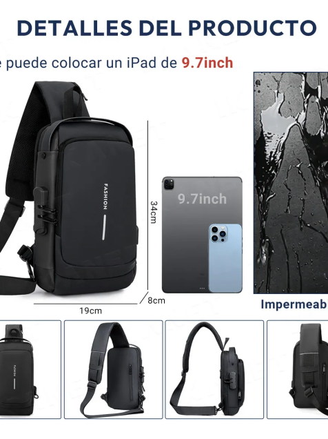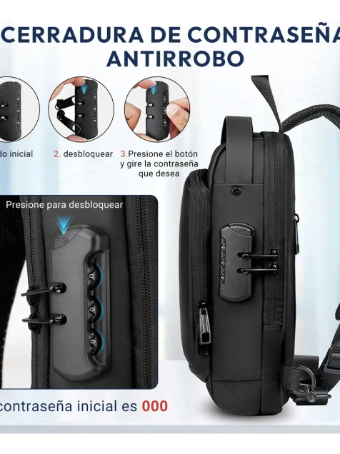 Antirrobo Mochila Viaje Mariconeras Pecheras Negra candado Tela Impermeable táctica bolso deporte