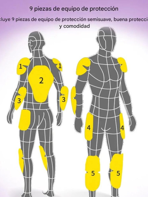 Incluye protectores de hombro, codo, espalda tu cuerpo.
