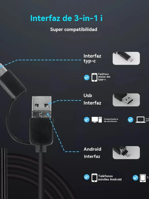 * Compatible with Android IPhone PC :Esta camara de endoscopio es compatible con teléfonos Android , por lo que es accesible a una gama más amplia de usuarios.