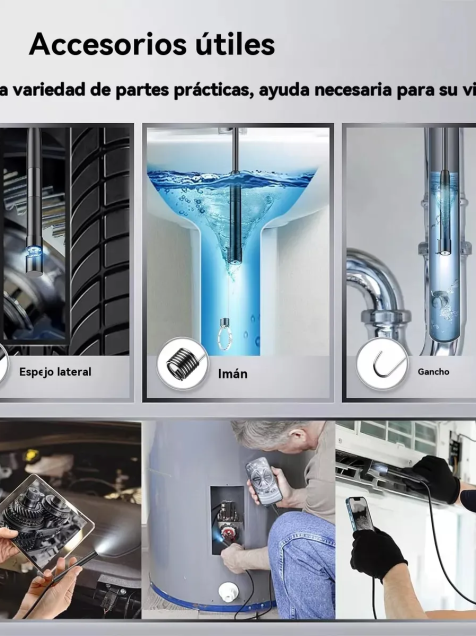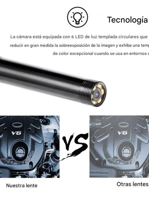 * 6 LEDs ajustables :Las 6 luces LED ajustables proporcionan una amplia iluminación para inspecciones claras y detalladas, lo que facilita la identificación de problemas.