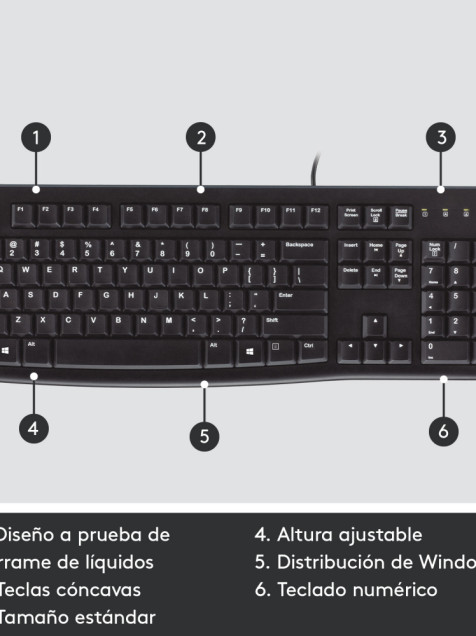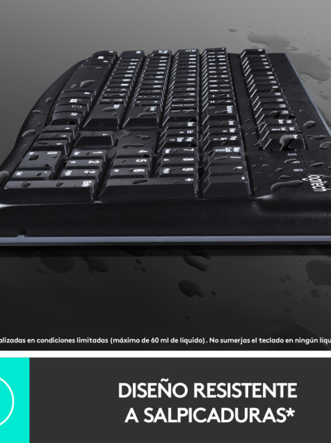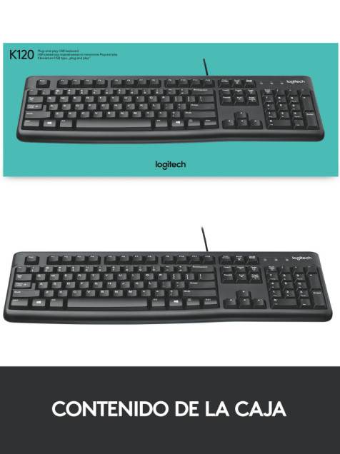Teclado logitech k120 alambrico usb resistente a derrames (español) negro