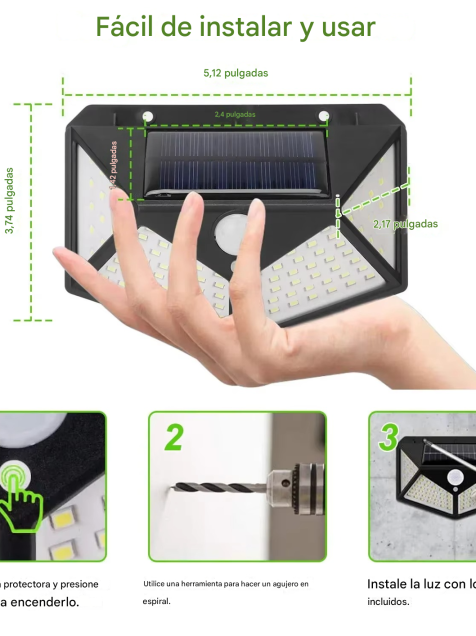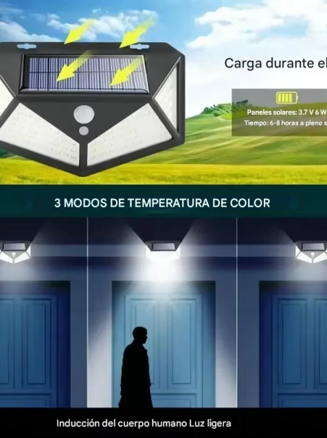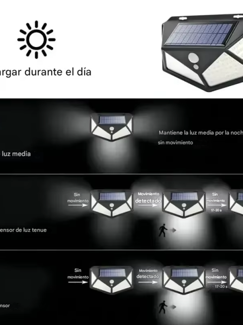 - La luz solar se cargará durante el día, se encenderá automáticamente hasta obtener una luz brilla