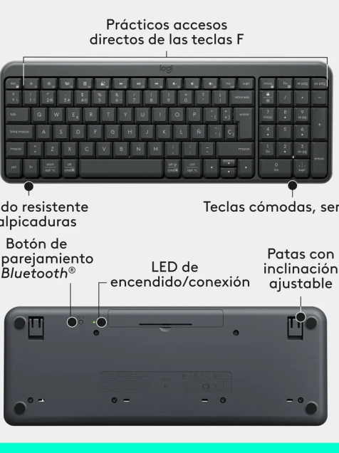 Teclado Logitech K250, Inalámbrico, Bluetooth, Negro, Español