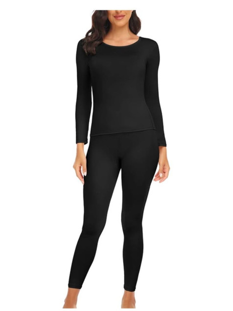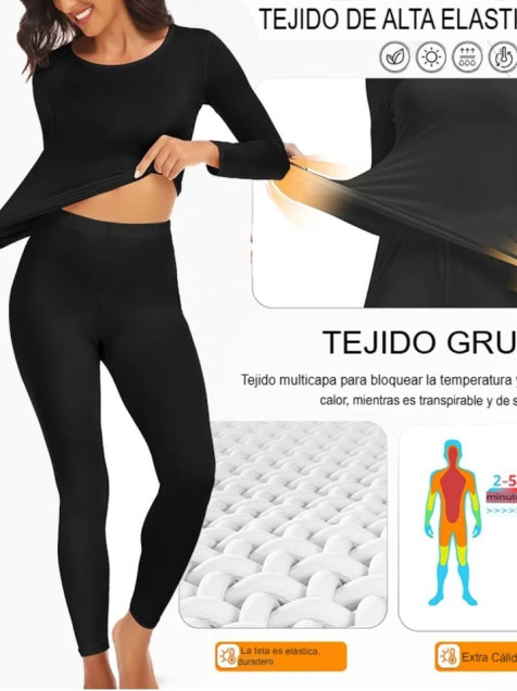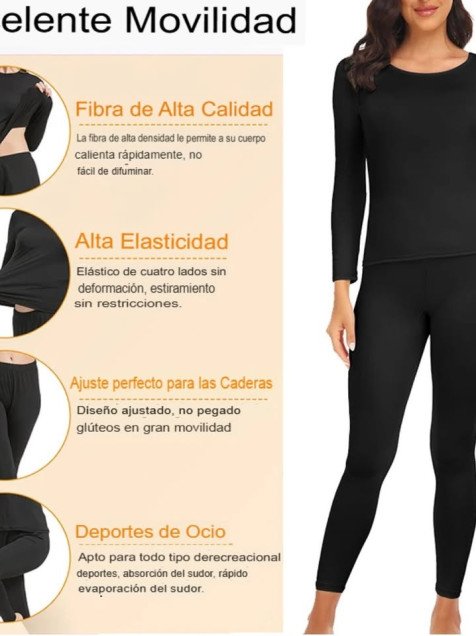 Ropa interior térmica mujer M negro pantalón blusa largos Tiempo frío conjunto completo uso diario
