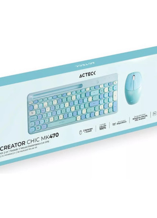 Kit de Teclado y Mouse Acteck Creator Chic Colors MK470, Inalámbrico, USB, Azul (Español)