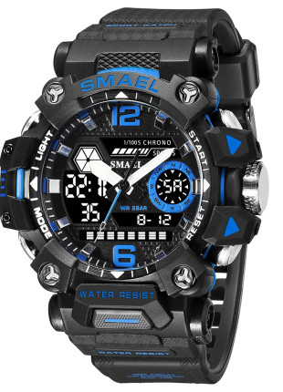 Reloj deportivo azul negro luz led agua doble pantalla cronómetro militar alarma Digital agua