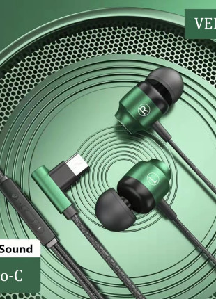 Audífonos manos libres tipo C magnéticos cable L juego Metal verde HiFi teléfono micrófono gamer
