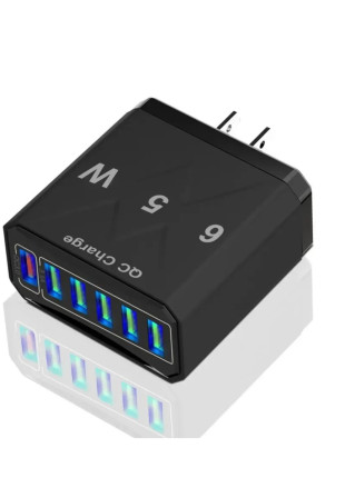 Cargador USB 6 puertos negro led adaptador carga rápida 3.0 65W teléfono iPhone Samsung Xiaomi