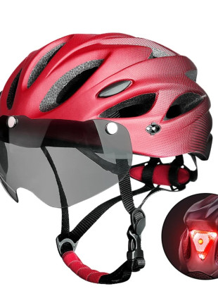 Casco bicicleta luz rojo negro LED trasera adulto accesorio ligero y transpirable seguridad gafas