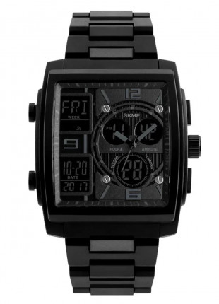 Reloj cuarzo japonés doble pantalla negro alarma militar 3 tiempos deportivo contra agua metálico