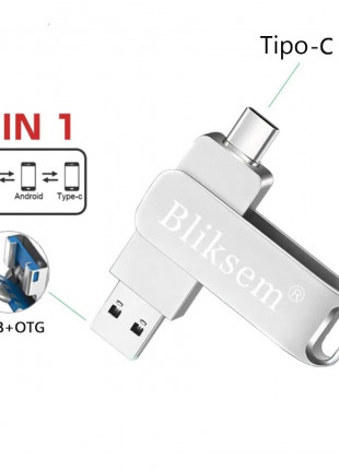 Memoria unidad Flash Tipo C OTG 64GB alta velocidad USB 2,0 3 en 1 Metal pc laptop teléfono plata