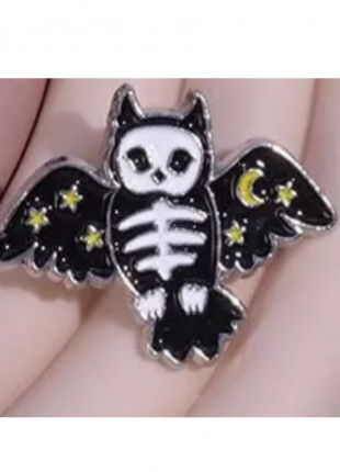 Pines Broche mochila Búho esqueleto Animal esmaltado solapa ave metálico negro blanco ropa